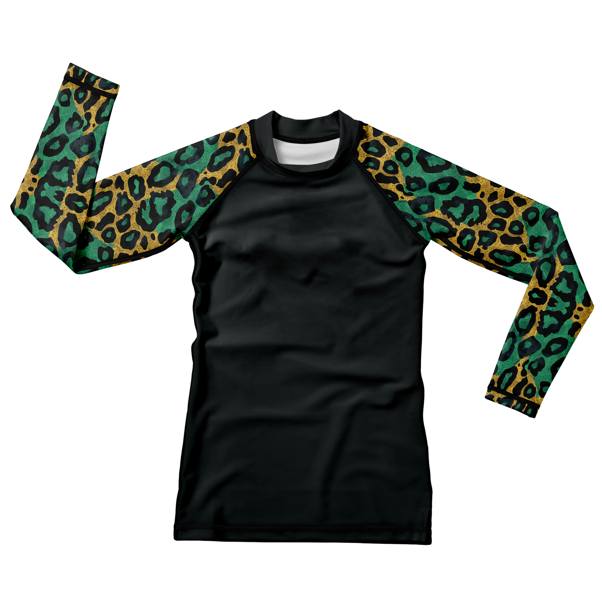The Savannah Leopard Kids BJJ Rash Guard lets young grapplers roll with confidence and wild energy. Designed for comfort and durability, this youth jiu jitsu rash guard keeps them cool, flexible, and protected through every match. The lightweight, stretch-fit fabric moves with their flow—so they can train hard, stay fierce, and have fun on the mats.